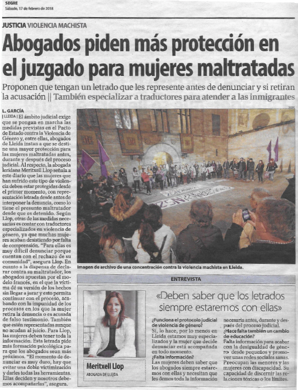2018 – COLABORACIÓN COMO ESPECIALISTA EN VIOLENCIA DE GÉNERO CON EL PERIÓDICO EL SEGRE